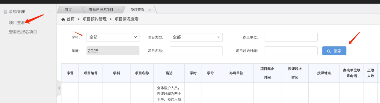 点击“查看已报名项目”查询自己报名的项目明细,确认报名成功如图(4):